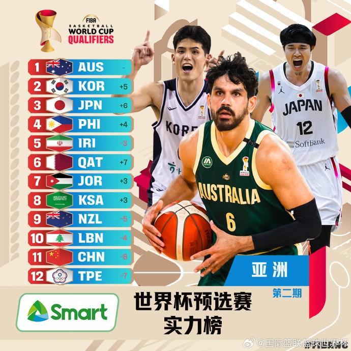 男籃世預賽亞大賽區(qū)最新實力榜:中國兩負韓國后跌至第11名