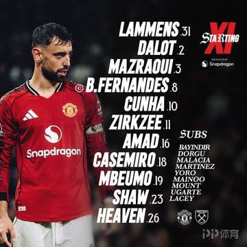 曼聯(lián)vs西漢姆聯(lián):庫尼亞、海文首發(fā),齊爾克澤出戰(zhàn),利馬替補