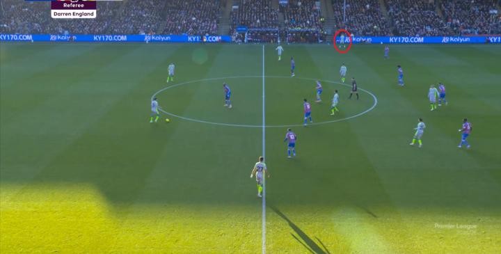 不過(guò),人還在,精力不可能和上賽季類似,所以哪怕在主場(chǎng),水晶宮依然保守應(yīng)對(duì),直至第10分鐘,采用連續(xù)爭(zhēng)高球的方式打進(jìn)了禁區(qū):